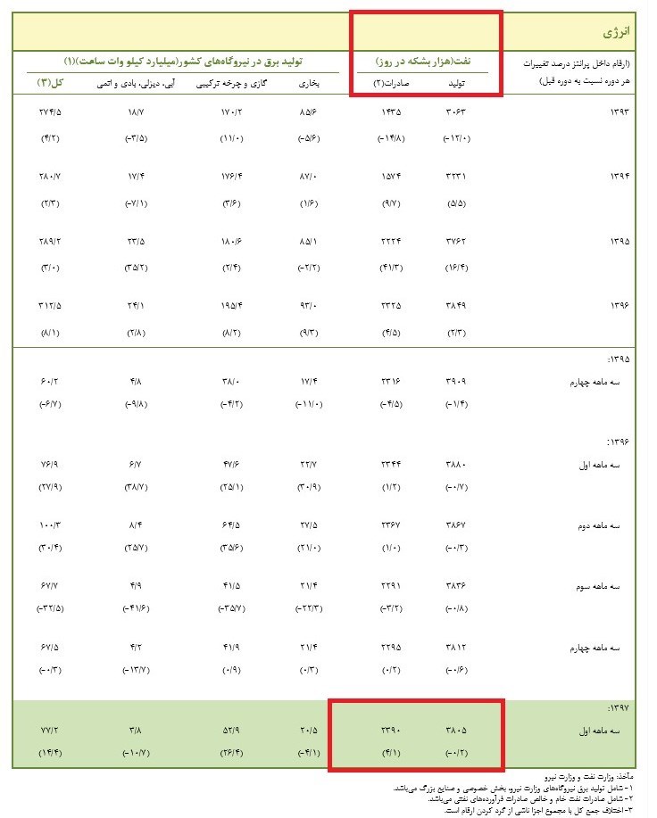به گزارش تسنیم بررسی گزارشهای بانک مرکزی نشان میدهد در بهار امسال 3.8 میلیون بشکه در روز نفت تولید شده است و از این مقدار حدود 2.4 میلیون بشکه در روز نیز صادر شده است. بنابراین حدود 1.4 میلیون بشکه نیز به مصارف داخلی اختصاص داده شده است. گفتنی است در این مدت صادرات نفت ایران حدود 4 درصد رشد داشته است.