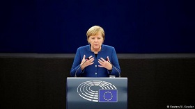 صدراعظم آلمان در پارلمان اروپا از ایده‌ی ایجاد یک ارتش اروپایی حمایت کرد. دونالد ترامپ با چنین اقدامی به‌شدت مخالف است. مرکل همچنین از اروپائیان خواست، شمار بیشتری پناهجو بپذیرند.