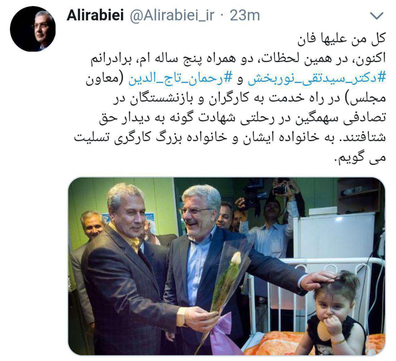 واکنش ربیعی به درگذشت مدیرعامل سازمان تأمین اجتماعی (عکس)