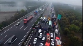 پلیس چین اعلام کرد: در تصادف زنجیرهای که در مرکز این کشور اتفاق افتاد دستکم ۹ تن کشته شدند.