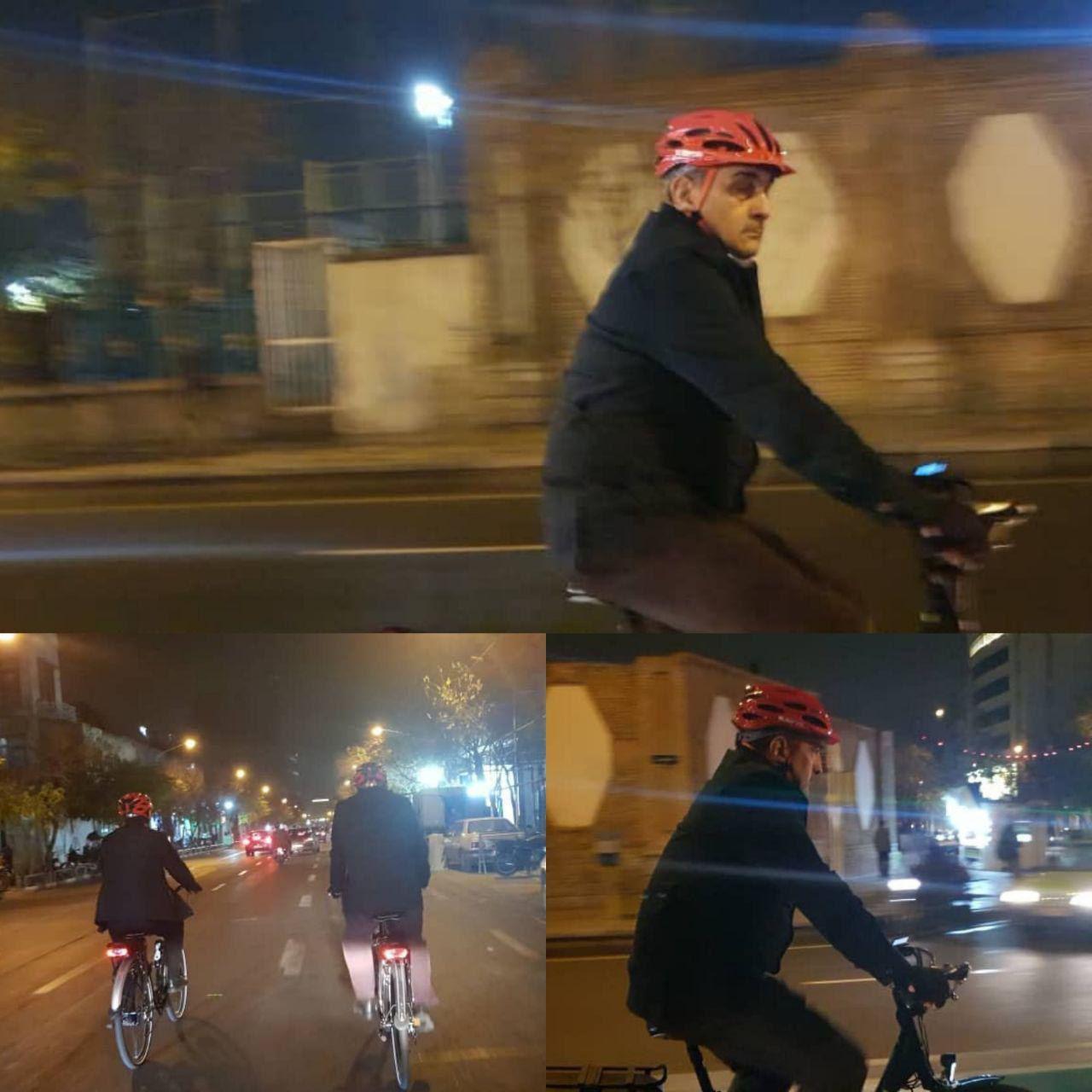 پیروز حناچی، شهردارتهران، در روز سه شنبه های بدون خودرو مسیر برگشت به خانه را هم با دوچرخه طی کرد.