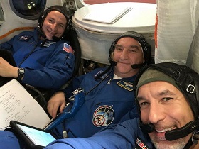 ناو سایوز ام اس-15 در 3 اکتبر 2019 به فرماندهی الگ اسکرپوچکا کیهان‌نورد با سابقه روسیه راهی مدار زمین می‌شود. در این ماموریت کریستوفر کسیدی فضانورد ناسا به عنوان مهندس پرواز و هزا المنصور کیهانگر اماراتی وی را همراهی می‌کنند. سفر اسکرپوچکا و کسیدی تا ماه آوریل 2020 ادامه دارد اما هزا المنصور همراه با کخ و هیگ بر عرشه ناو سایوز ام اس-12 در 18 اکتبر به زمین بر می‌گردد.