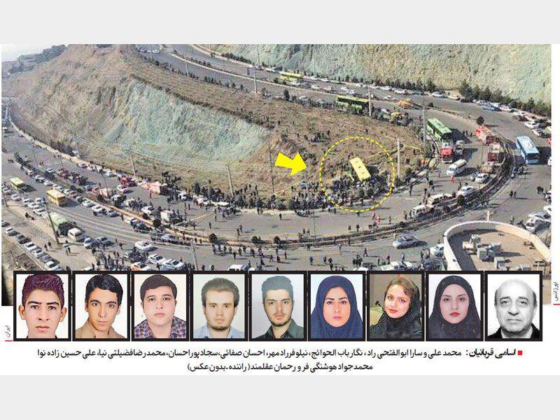 10 کشته حادثه اتوبوس دانشگاه آزاد علوم تحقیقات تهران