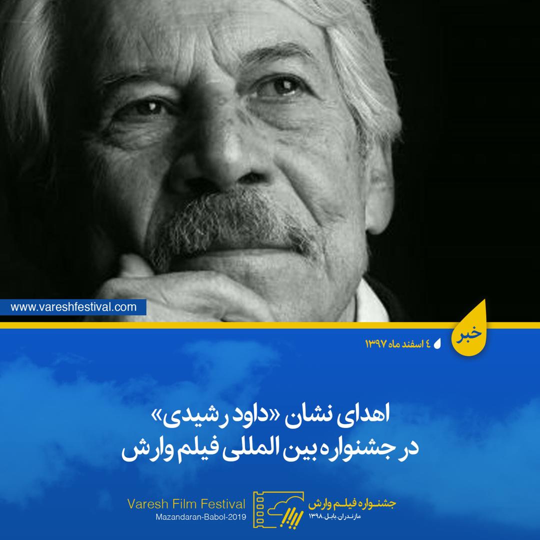 خانواده داود رشیدی همزمان با نهمین جشنواره بین المللی فیلم وارش نشان این هنرمند فقید را به هنرمندان استان مازندران اهدا می‌کنند.