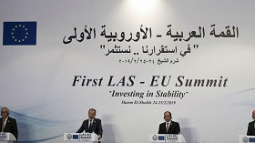 نمایندگان حدود ۴۰ کشور عضو اتحادیه عرب و اتحادیه اروپا روزهای یک‌شنبه و دوشنبه نخستین نشست میان این دو سازمان بین‌المللی را «به منظور تقویت ثبات، رفاه و زندگی بهتر در هر دو منطقه» برگزار کردند. مسئله فلسطین و اسرائیل، جنگ بی‌پایان در لیبی، سوریه و یمن و همچنین نبرد با «تروریسم» و اسلام‌گرایان افراطی از مهم‌ترین محورهای این نشست دو روزه بود.