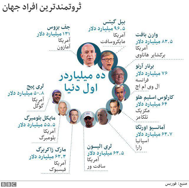 مجله اقتصادی فوربس امسال هم در گزارشی فهرستی از میلیاردرهای بزرگ جهان در سال جاری میلادی (۲۰۱۹) را منتشر کرده است.