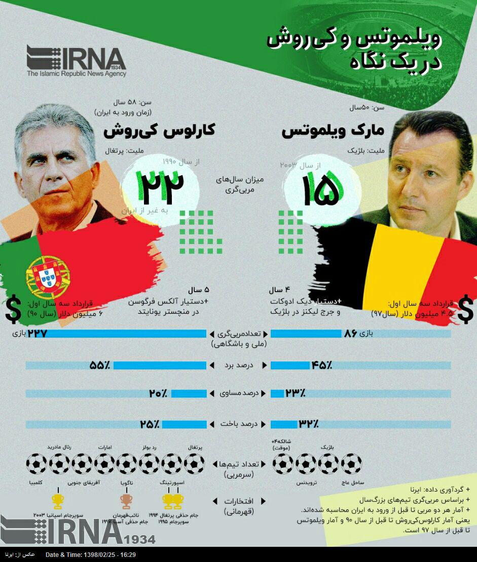 مقایسه کارنامه ویلموتس و کی روش در یک نگاه (اینفوگرافی)
