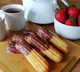 مواد را پس از کمی خنک شدن داخل قیف با ماسوره ی دلخواه بریزید و داخل سینی فر که کاغذ روغنی گذاشتید، به صورت نوارهای بلند ماسوره بزنید، سپس روی شیرینی ها را با یک قاشق کره ی آب شده برس بکشید و در فر 170 درجه به مدت 20 دقیقه بگذارید بپزند تا روی آن طلایی شود، پس از سرد شدن می توانید نصفی از شیرینی ها را با شکلات آب شده تزیین کنید.