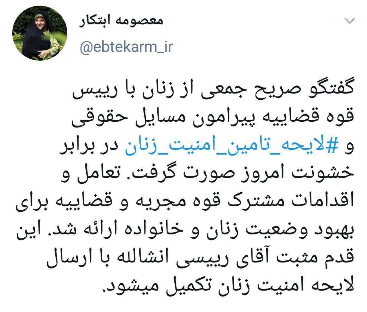 توئیت معصومه ابتکار درباره گفتگو زنان با رییس قوه قضاییه