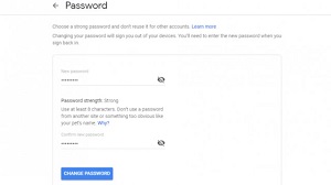 حالا به منظور ریست کردن گذرواژه، بر روی کلمه 'Password' کلیک کرده تا با وارد کردن رمز عبور فعلی و کنونی خود از هویت شما اطمینان حاصل کند. در این مرحله، گوگل از شما می‌خواهد که رمز عبور جدیدی را برای اکانت خود انتخاب کرده و آن را دو بار تایپ و وارد کنید.