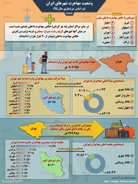 وضعیت مهاجرت در شهرهای ایران (اینفوگرافی)