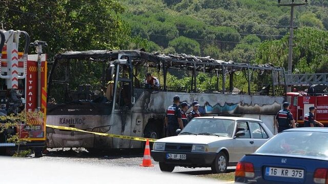به گزارش ایسنا، این اتوبوس از شمال غرب استان چناق‌قلعه در حال حرکت بود که درمسیر بزرگراه بین دو شهر بالیکسیر به آنکارا آتش گرفت.