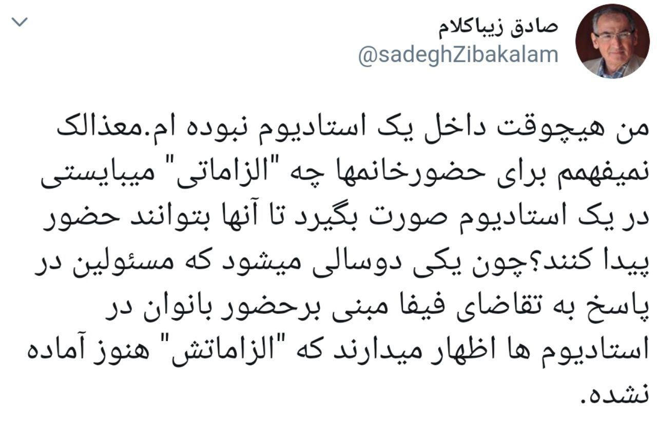 توییت صادق زیباکلام درباره ورود زنان به ورزشگاهها