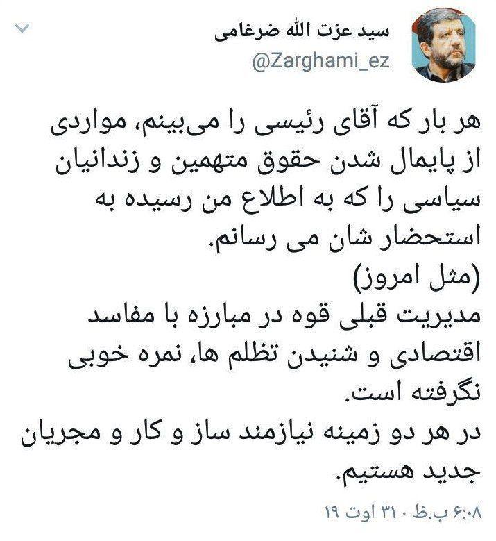 گلایه ضرغامی از وضعیت زندانیان سیاسی و انتقال آن به رئیسی