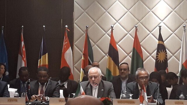 ظریف تاکید کرد: برای همه ما افزایش یک جانبه گرایی، افراط گرایی و دیپلماسی قایق‌های توپ دار مانع جدی در مسیر حاکمیت قانون است و اقدامات غیر قانونی علیه شهروندان تروریسم اقتصادی است و این‌ها نه تنها از مهمترین چالش‌های پیش روی کشور‌های حاشیه اقیانوس هند بلکه چالشی برای دستاورد‌های جهانی است که تاکنون و طی دهه‌های گذشته حاصل شده است.