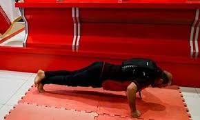 قارداش زاده این حرکت را با یک پا و با وزنه ۱۸کیلویی در پشت در مدت یک دقیقه انجام داد.