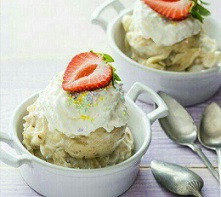 می توانید روی بستنی موزی ها را با خامه، اسپرینکل و برش توت فرنگی تزئین کنید و یا از اسکوپ های بستنی وانیلی و شکلاتی در کنار آن استفاده نمایید.