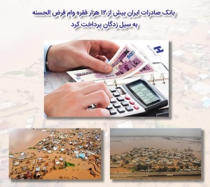 به گزارش روابط‌عمومی بانک صادرات ایران، هموطنان آسیب‌دیده از سیل فروردین ماه سال جاری طی شش ماه گذشته بیش از ١٢ هزار و ٦٥٥ فقره وام قرض‌الحسنه به ارزش بیش از سه هزار و ٥٦٥ میلیارد ریال از بانک صادرات ایران وام قرض‌الحسنه دریافت کرده‌اند که روند پرداخت تسهیلات به آسیب‌دیدگان از سیل همچنان در شعب این بانک ادامه دارد.