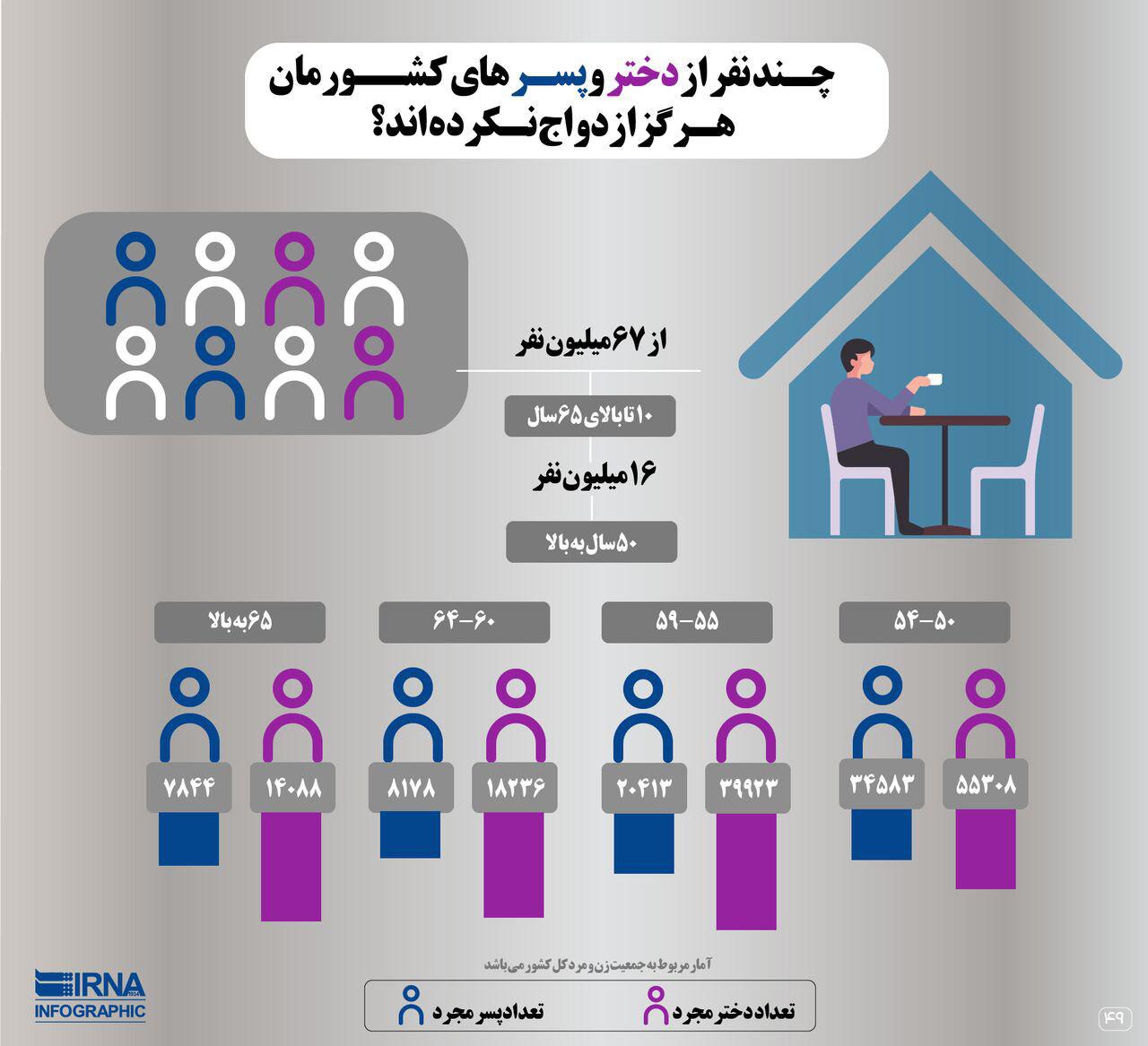 چند نفر از دختر و پسرهای کشورمان هرگز ازدواج نکرده اند؟