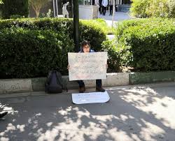 تنها دانشجوی ستارهدار دانشگاه تهران در اعتراض به محرومیت خود از تحصیل در مقطع دکتری، مقابل کتابخانه مرکزی دانشگاه تهران، تحصن کرد.