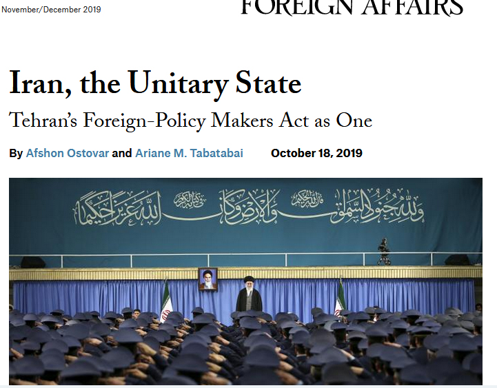 فارن افرز نوشته:" سیاست گذاران غربی باید این واقعیت را بپذیرند که سیاست امنیتی ایران با اجماع در تهران و به عنوان یک دولت متحد ترسیم می‌شود.