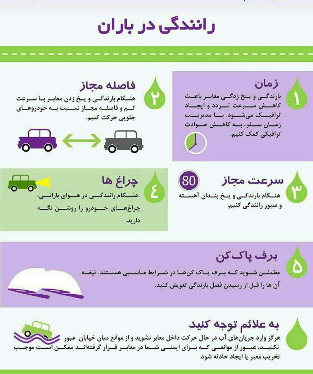 نکات آموزشی برای رانندگی در باران (اینفوگرافی)