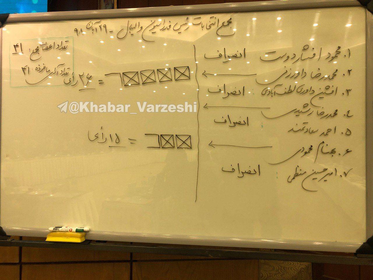 بهنام محمودی نیز در این انتخابات 15 رای کسب کرد. رشیدی نیز رایی کسب نکرد.