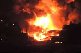 این قطار که نفت خام منتقل می‌کرده به دلایل نامعلوم از ریل خارج شده است. پلیس در حال بررسی علل انفجار و آتش‌سوزی است.