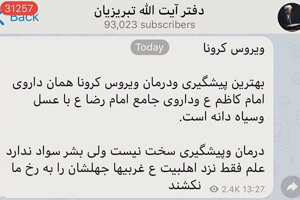 واقعا منتظر هستیم تا جناب تبریزیان، کیف طب اسلامی خود را زیر بغل بزند و به خیابانهای قم برود و اکسیر ضد کرونای خود را به خورد مردم مسلمان قم بدهد. چین که به قول حاج آقا از بلاد کفر هستند، ما که مسلمانیم. چرا جامعه اسلامی را از خدمات شایان خود محروم میکنید؟