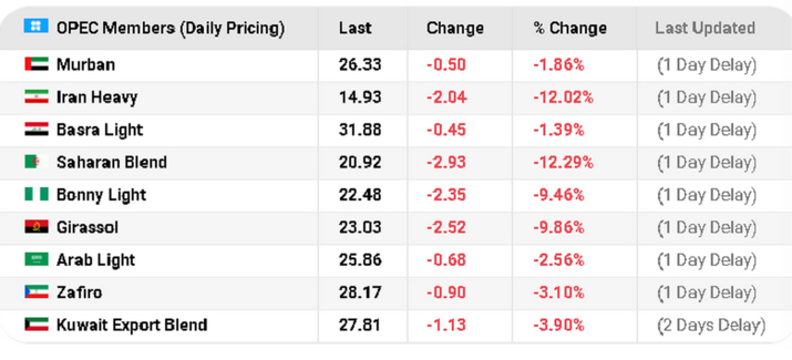 بر اساس داده‌های اخیر سایت نفتی "اویل پرایس" هم، قیمت "نفت سنگین" ایران در سبد نفتی اوپک نیز به زیر 15 دلار سقوط کرده است؛ تازه این در حالی است که با توجه به تحریم‌ها خریداری برای نفت ایران در بازرار سیاه باشد که در قیمت 15 دلاری برای تحقق پیش‌بینی بودجه 99 باید بیش از 3 میلیون بشکه در روز نفت بفروشیم تا پیش‌بینی درآمدی لایحه بودجه سال 99 محقق شود؛ که امری محال خواهد بود.