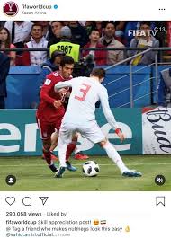 اینستاگرام جام جهانی فوتبال فیفا با انتشار این صحنه نوشت: برای قدردانی از این مهارت زیبا. کسانی که توانایی این مهارت را دارند تگ کنید.