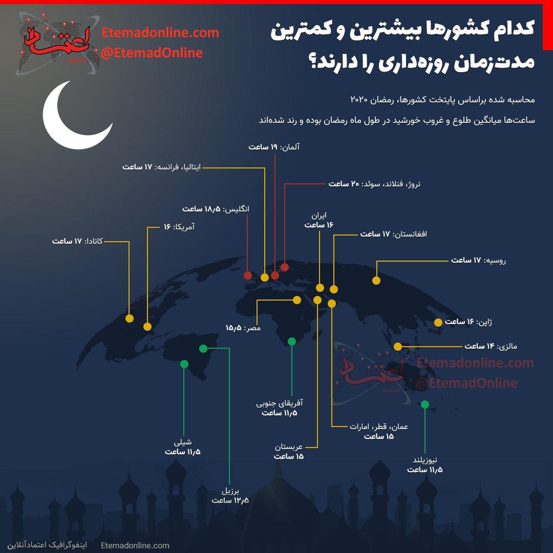 کدام کشورها بیشترین و کمترین مدت‌زمان روزه‌داری را دارند؟