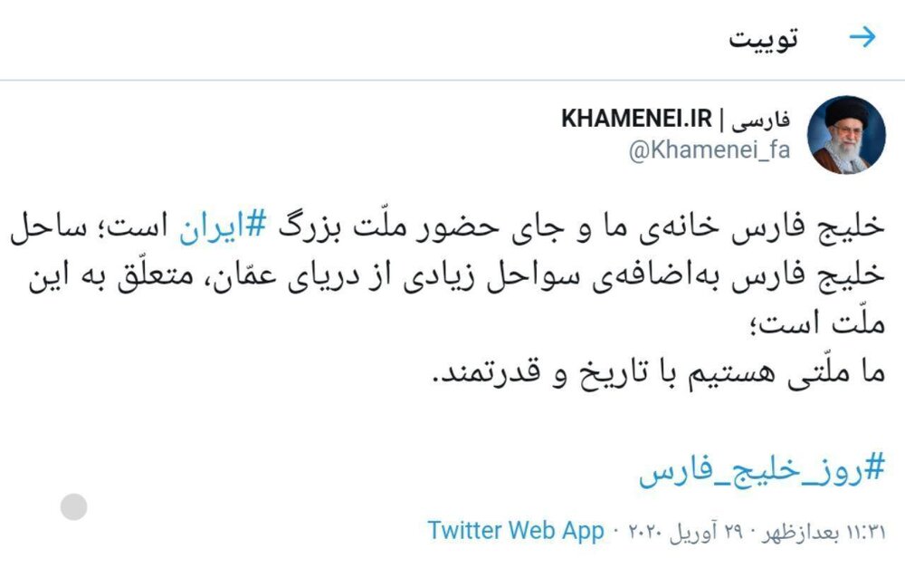 پایگاه اطلاع رسانی دفتر مقام معظم رهبری در روز خلیج فارس توییت مقتدرانه ای منتشر کرد.