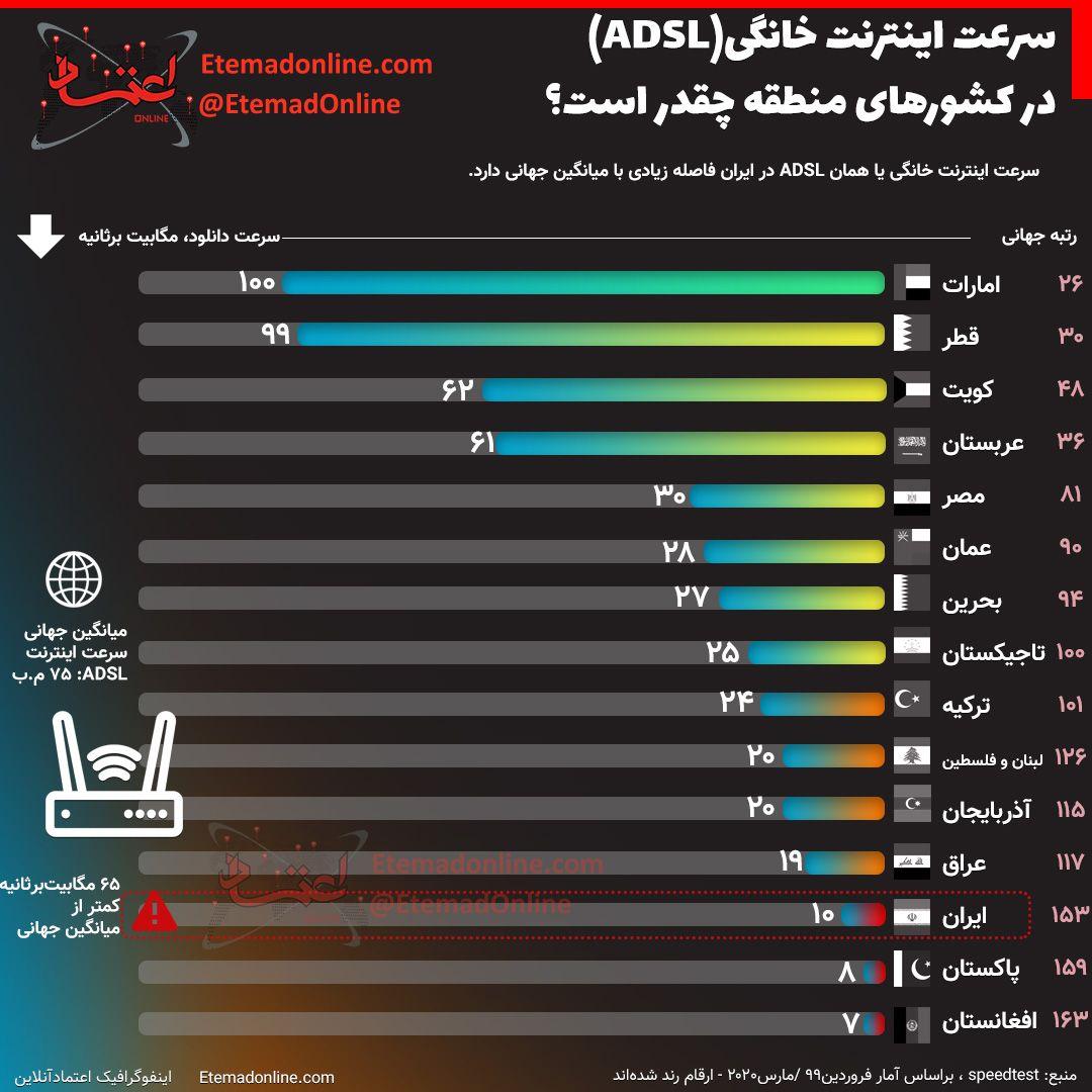 سرعت اینترنت خانگی (ADSL) در کشورهای منطقه چقدر است؟