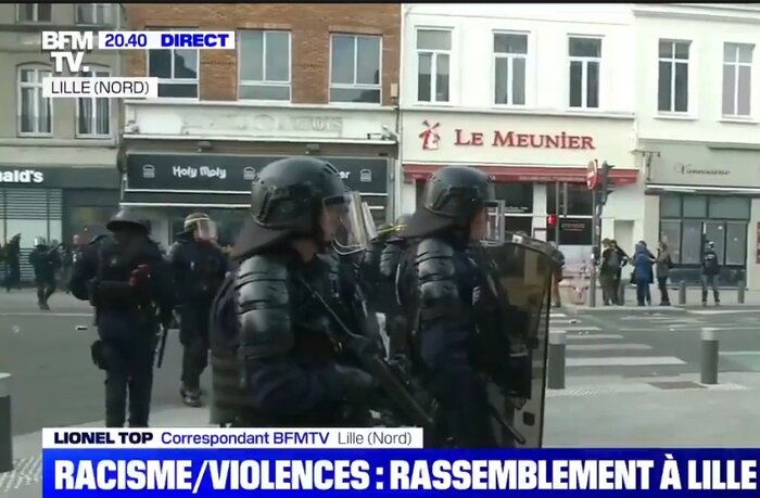 در ویدئویی که شبکه تلویزیونی «ب.اف.ام» فرانسه در صفحه توئیتر خود منتشر کرده، جمع زیادی از معترضان که بخش عمده آنها را جوانان شامل میشود، عصر پنجشنبه با حضور در خیابانهای لیل نسبت به اعمال خشونت توسط پلیس و نژادپرستی اعتراض کردند.