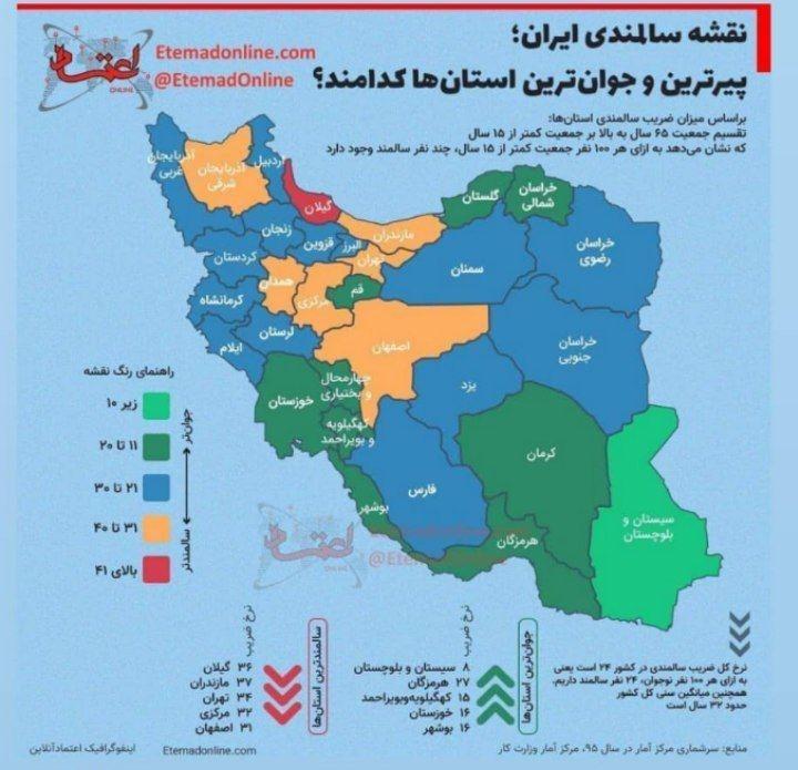 پیرترین و جوان‌ترین استان‌ها را بشناسید (عکس)