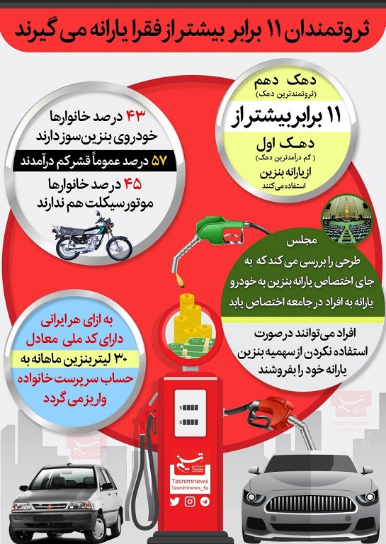 ثروتمندان ۱۱ برابر بیشتر از فقرا یارانه بنزین می‌گیرند (اینفوگرافیک)
