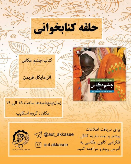 کانون عکاسی دانشگاه صنعتی امیرکبیر، حلقه‌ کتابخوانی مجازی «چشم عکاس» را برگزار می‌کند.