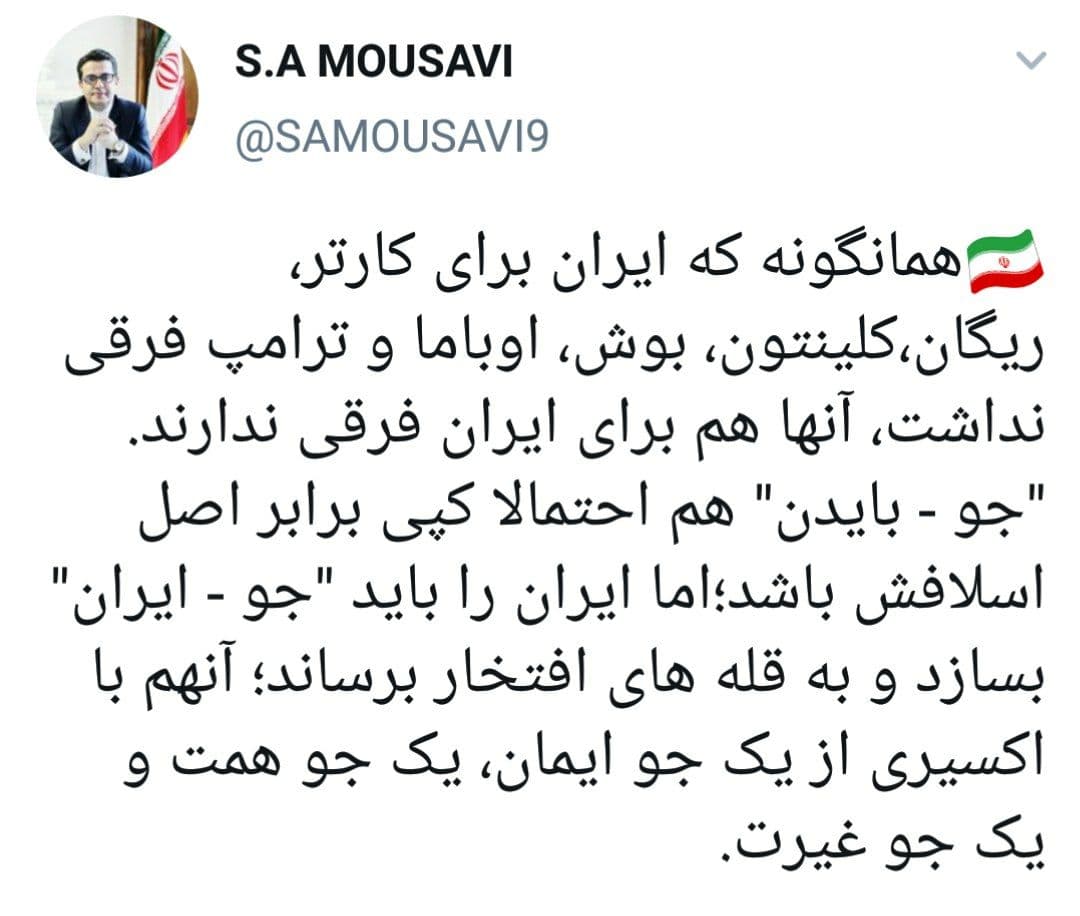 واکنش سفیر ایران در آذربایجان به پیروزی جو بایدن: ایران را باید یک جو ایمان، یک جو همت و یک جو غیرت بسازد