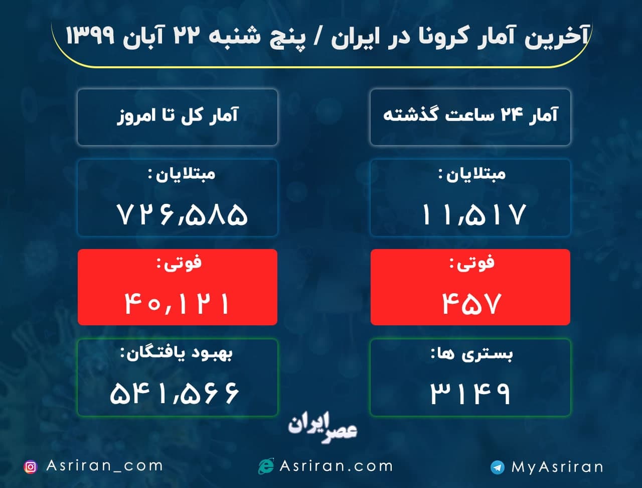 آخرین آمار کرونا در ایران / پنج شنبه 22 آبان 99 (اینفوگرافیک)