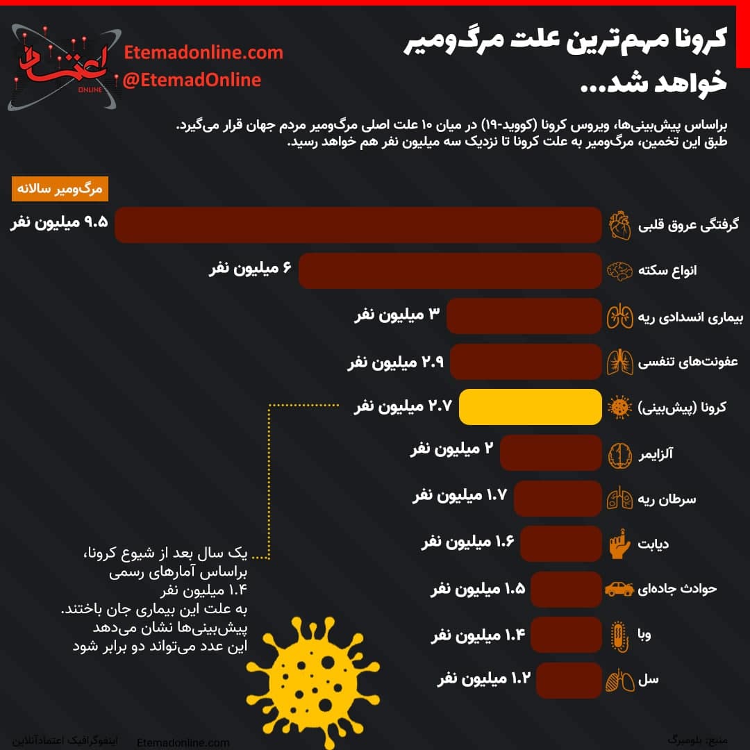 کرونا مهم‌ترین علت مرگ‌ومیر خواهد شد؟ (اینفوگرافیک)
