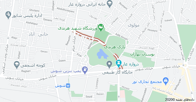 قرمز، آبي، زرد، سبز و باز هم قرمز، عرض 6 قدمي هر خانه زير رنگ و رطوبت و سيمان پوسيده تكرار تند رنگ‌هاي ساده‌اي را نشان مي‌دهد كه مي‌خواهند چون مسكني موقت، دردهاي پنجره‌هاي نيم متري و درهايي يك متري را فراموش كنند. اينجا «دروازه‌غار» است، در ابتداي كوچه «قالي‌شويان»و در آستانه شمالي‌ترين در مرتفع و منقش به برگ‌هاي سياه فلزي پارك هرندي. از يك سو هر چه تازگي است پشت نرده‌هاي خوش‌ساخت پارك محبوس است و از سويي ديگر، عرصه‌اي است 6 متري مقابل خانه‌هايي كه با زور رنگ خواسته‌اند زيبا نشان داده شوند، عرصه‌اي براي افتتاح پاركي «زيباتر از پارك شهر».