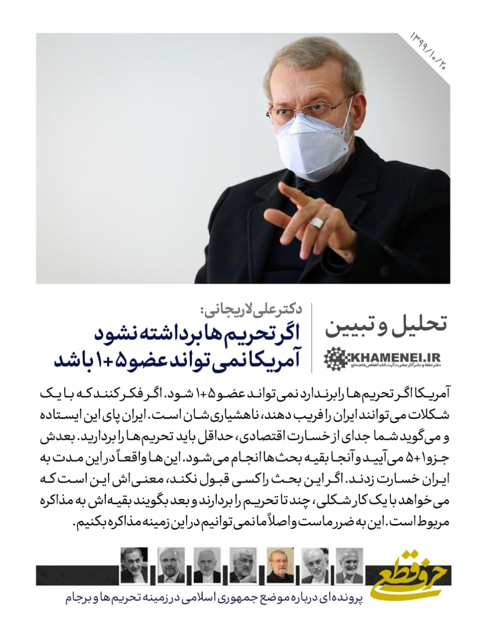 - آمریکا اگر تحریمها رابرندارد نمیتواند عضو ۵+۱ شود.