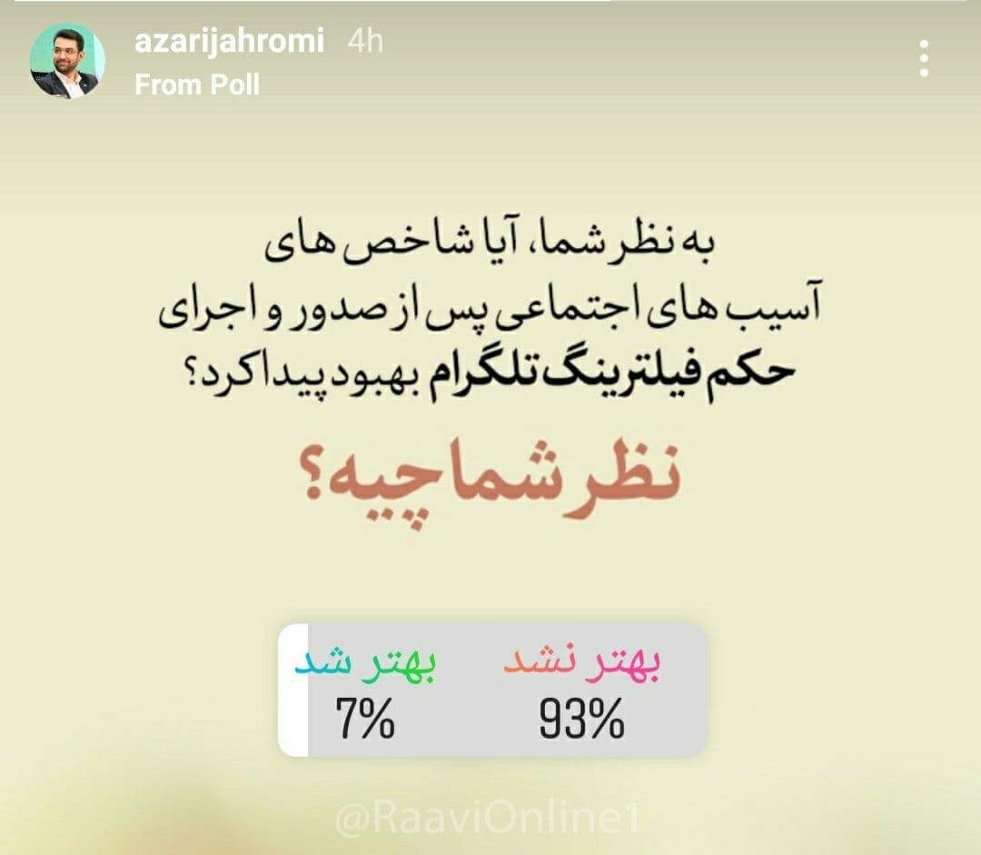 نظرسنجی اینستاگرامی آذری‌ جهرمی در مورد تلگرام
