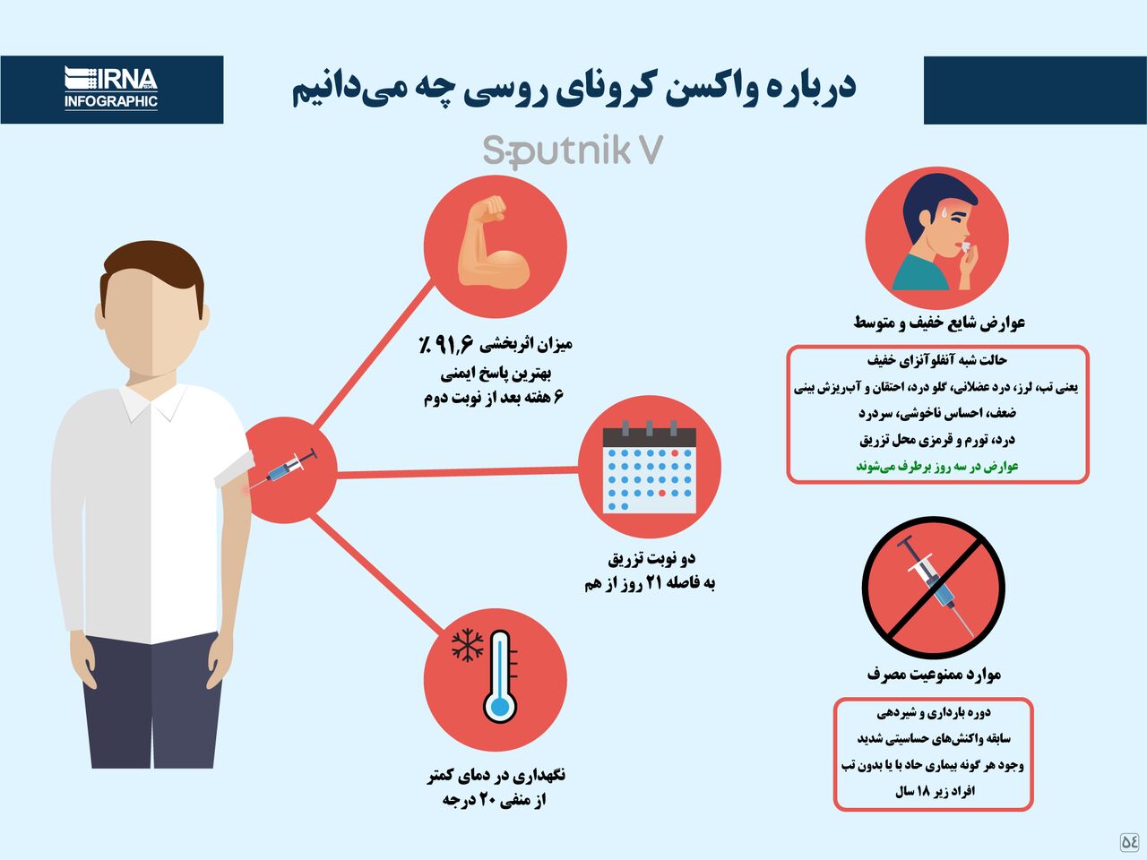 نخستین محموله واکسن کرونای روسی با نام «اسپوتنیک وی» ۱۶ بهمن وارد ایران شد و قرار است در مجموع دو میلیون دوز از آن در هفته‌های آینده وارد کشور شود. برخی از نکاتی را که وزارت بهداشت روسیه درباره این واکسن منتشر کرده، در این طرح ببینید.