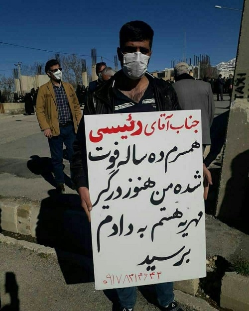 پلاکارد مردی در یاسوج درباره همسر فوت شده اش (عکس)