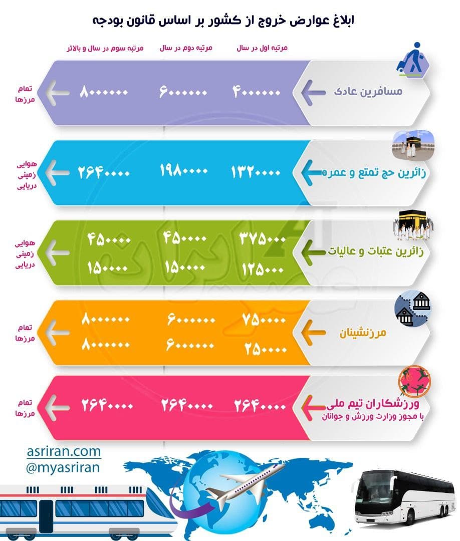 عوارض خروج از کشور در سال 1400 (اینفوگرافیک)