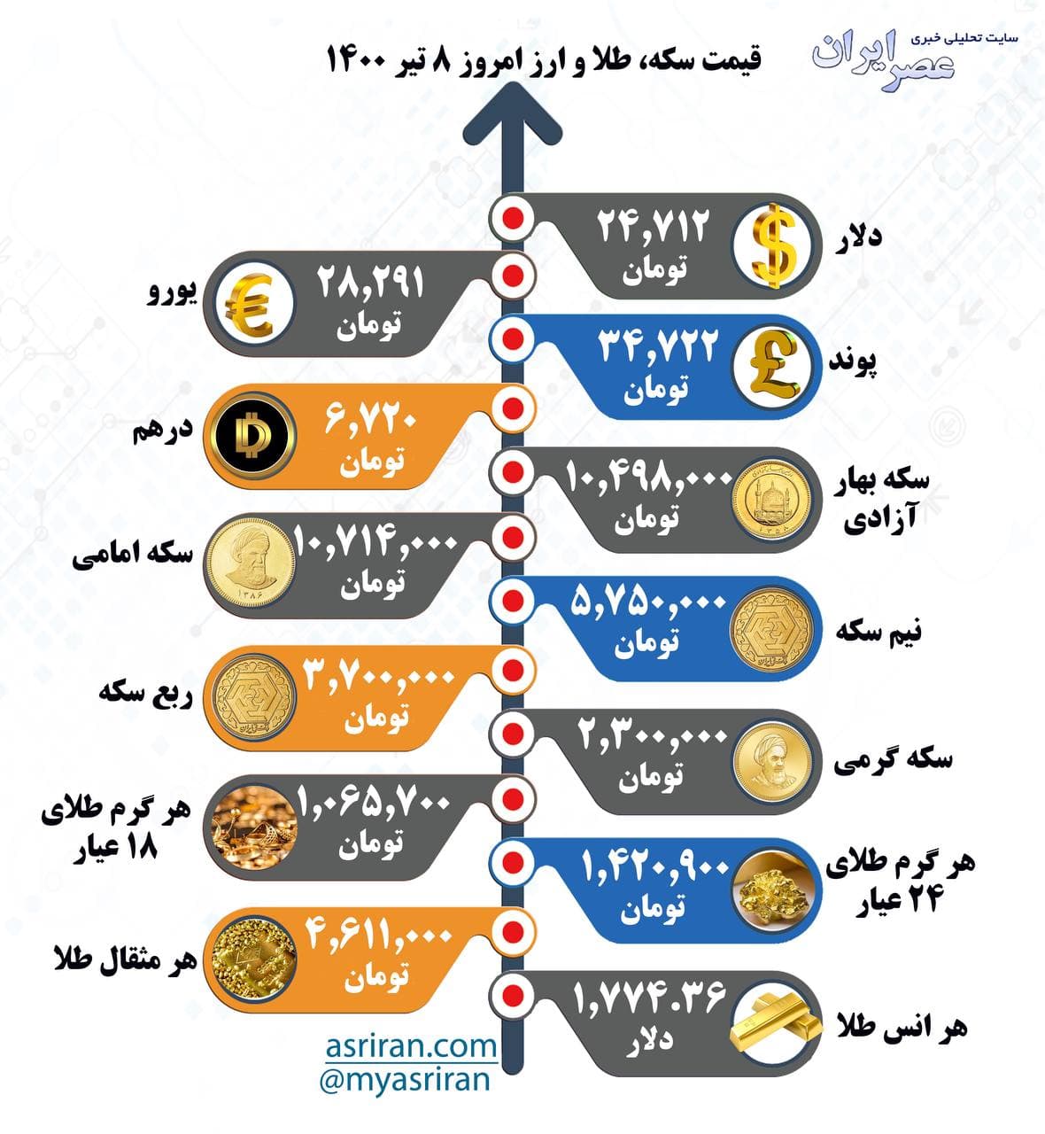 قیمت سکه، طلا و ارز، سه‌شنبه ۸ تیر (اینفوگرافیک)