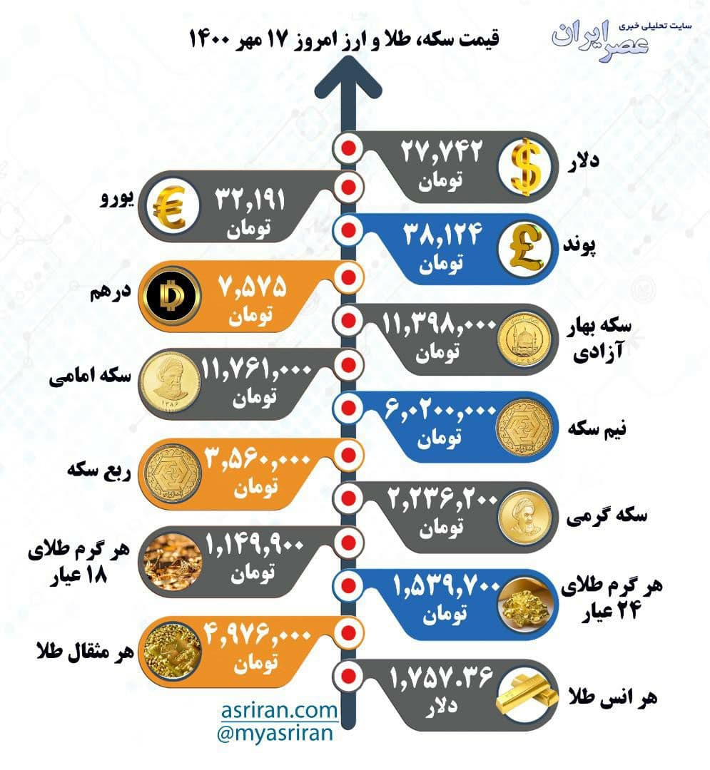 قیمت سکه، طلا و ارز امروز ۱۷ مهر ۱۴۰۰ (اینفوگرافیک)