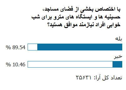 نتیجه نظرسنجی عصر ایران درباره مکان شب خوابی نیازمندان